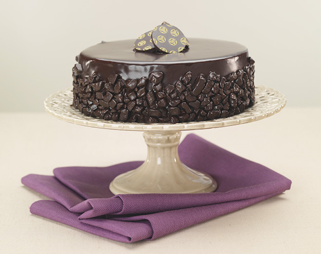 Made with 100% real chocolate ganache, covered with bitter glazing and decorated with chocolate chunks.